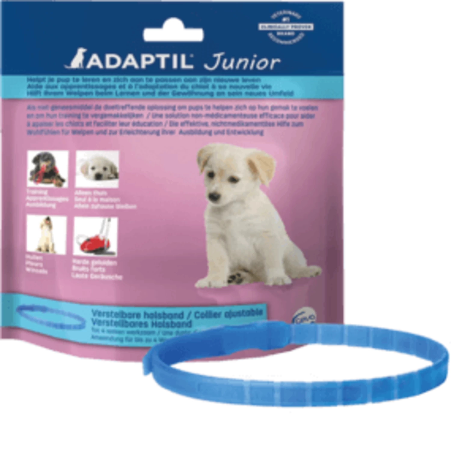 ADAPTIL is een kopie van het Dog Appeassing Pheromone en helpt zowel puppy’s als oudere honden omgaan met nieuwe en stressvolle situaties. Wanneer de feromonen worden verspreid door de ADAPTIL producten, geeft dit hetzelfde sterke gevoel van veiligheid en comfort dat de hond kreeg in het nest bij zijn moeder.