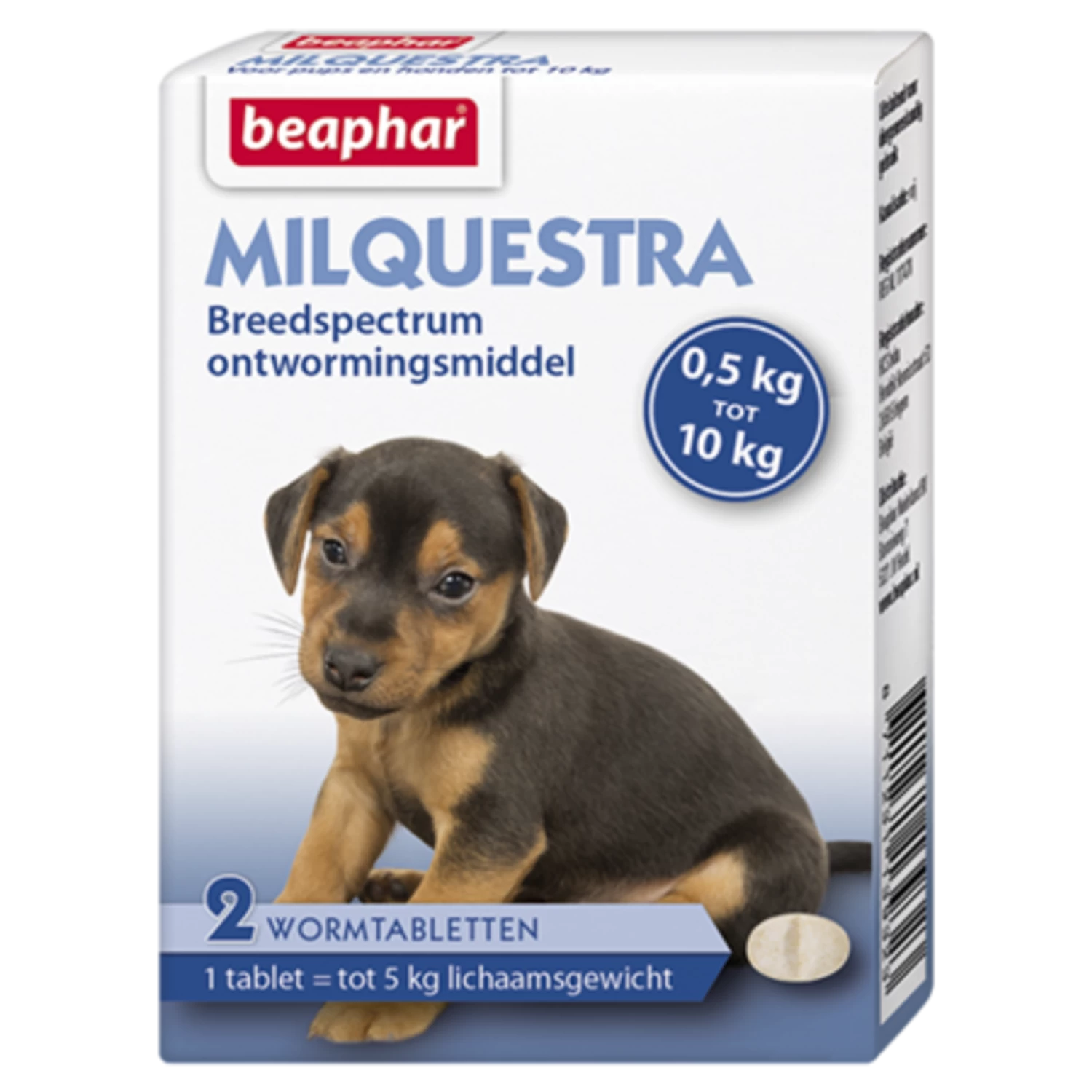 - Ingrediënten: Milbemycine oxime 2.5mg, Praziquantel 25mg.