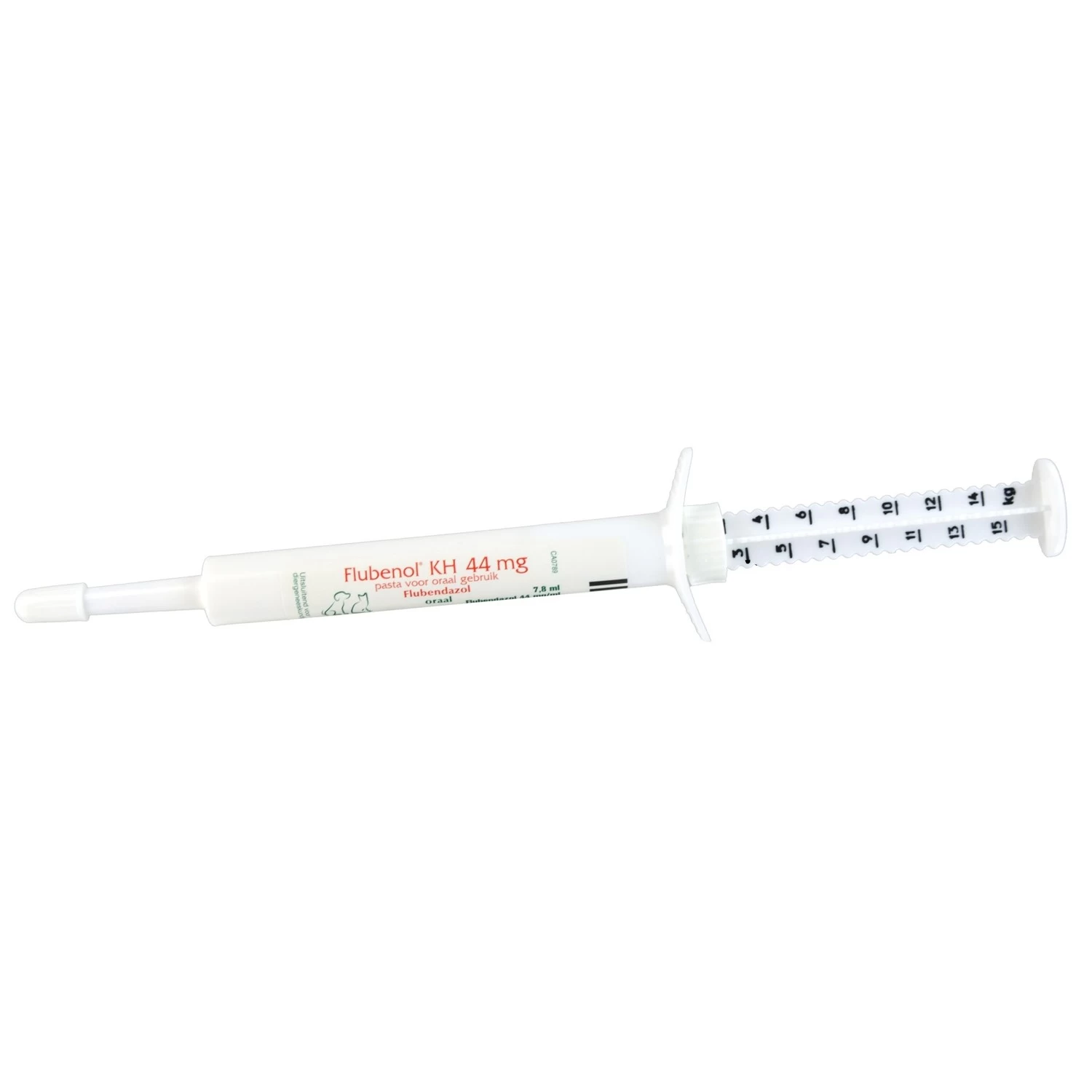 Flubenol KH Pasta is een smakelijke ontwormingspasta voor honden en katten op basis van flubendazol. Flubenol KH Pasta is werkzaam tegen onder andere spoelwormen, lintwormen, haakwormen en zweepwormen. Flubenol KH heeft een zeer brede veiligheidsmarge en wordt door dieren van alle leeftijden goed opgenomen. Gemakkelijke ontworm behandeling, ook voor pups en kittens, in een handige verstelbare spuit.