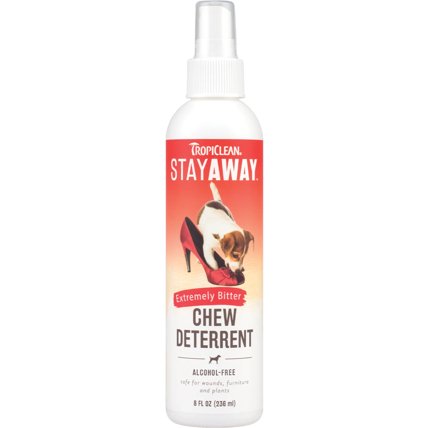 Hoe bitter zeg je? – tropiclean stay away is geformuleerd met enkele van de meest bittere extracten ter wereld. Tropiclean stay away smaakt zo bitter dat het dieren ontmoedigt om ooit te willen kauwen, bijten, likken of knagen aan iets dat ermee bedekt is.